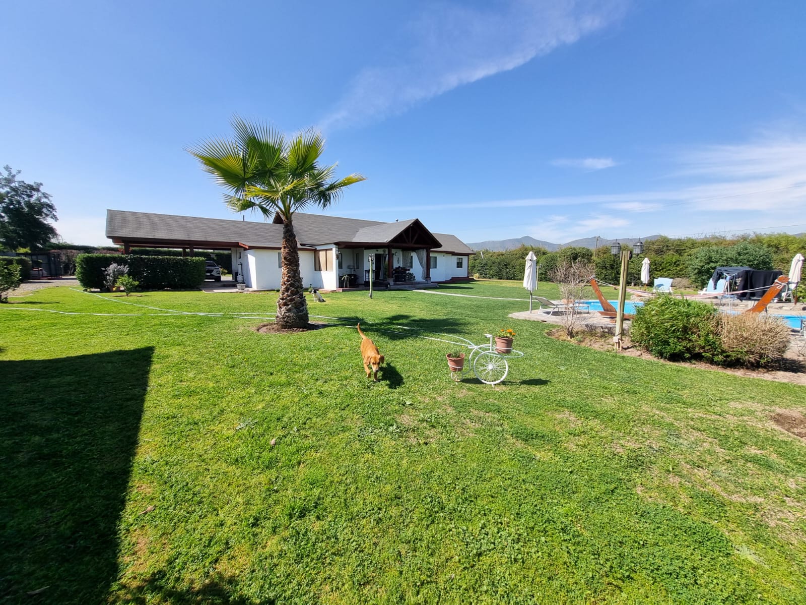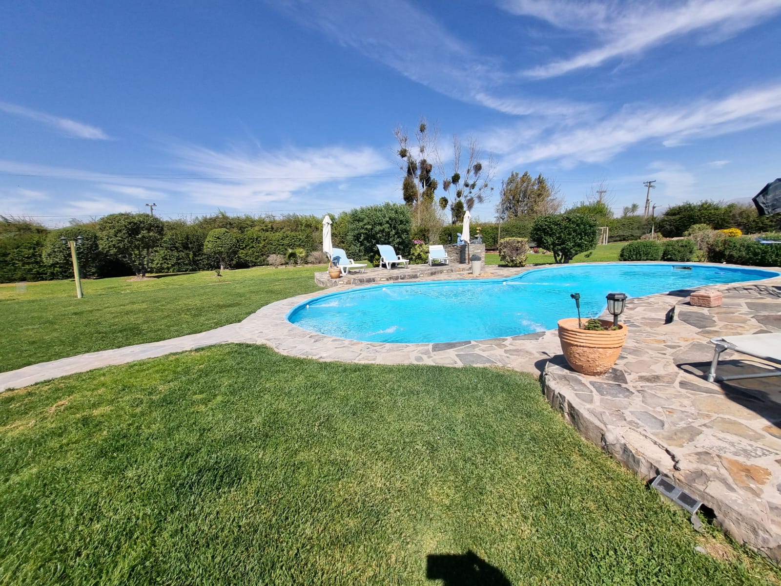 - Quincho techado de 9 x 4 mt, con lavacopas, leñera, horno y vista directa a la piscina