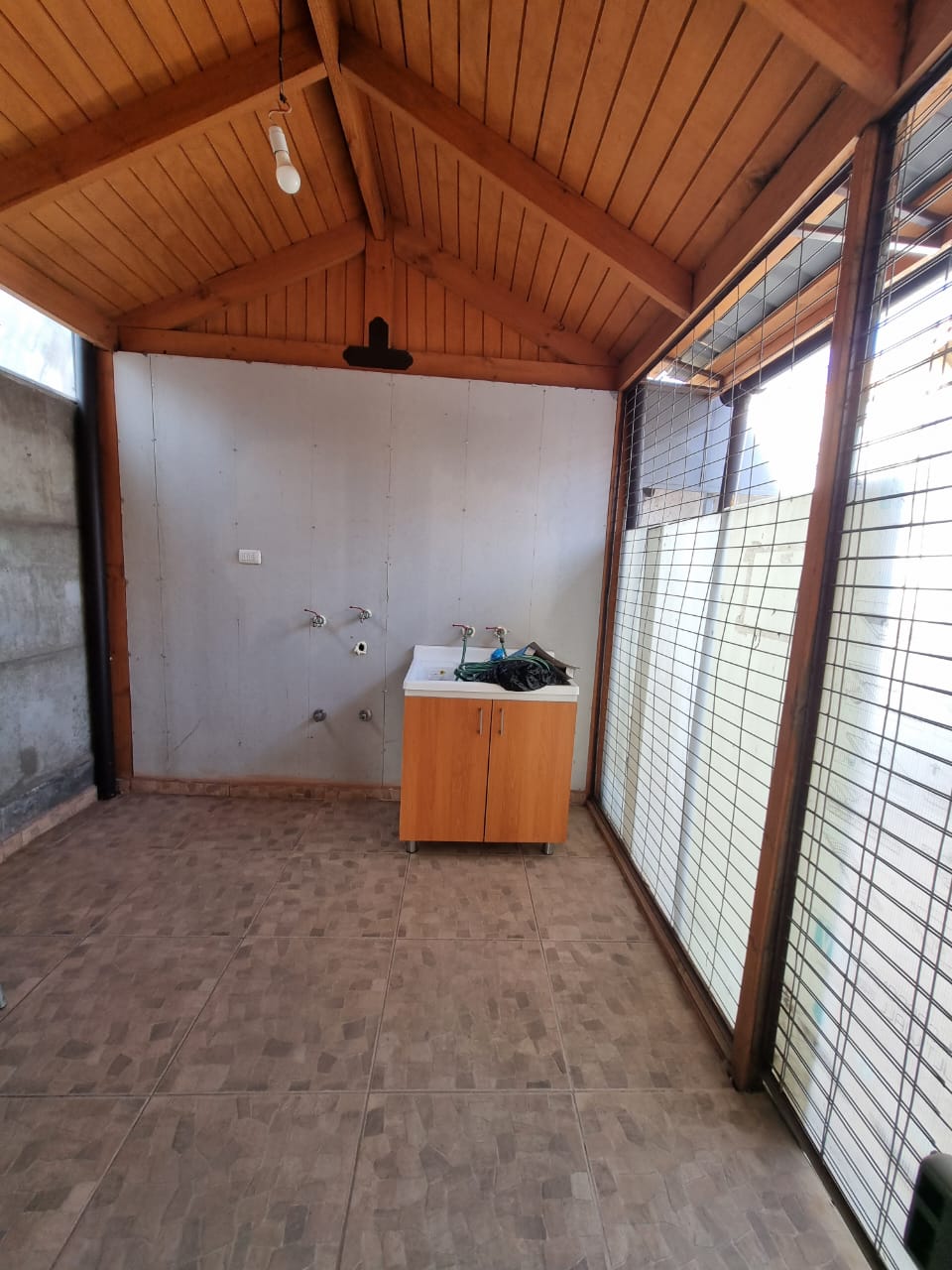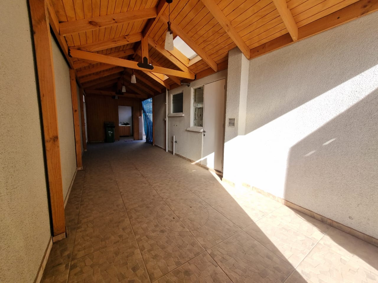 - Cobertizo lateral techado, con tragaluz y portón de fierro madera